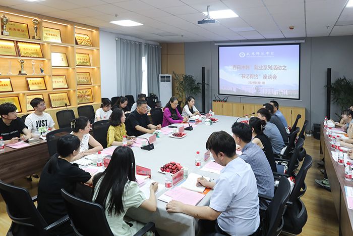 6月13日下午,我校举办“百日冲刺”就业系列活动之“书记有约”座谈会。校党委书记赵万东、校党委副书记周群英出席会议。招生就业处处长王奥玲主持会议。