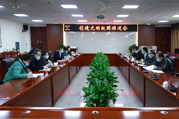 3月22日,学校创建文明校园领导小组副组长、校党委副书记袁也主持召开创建“文明校园”工作推进会。