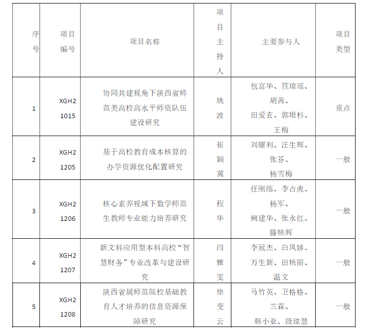 近日,陕西省高等教育学会发布《关于公布省高等教育学会2021年度高等教育科学研究项目立项结果的通知》(陕高学会〔2021〕13号)。我校教师获得重点项目1项、一般项目4项。