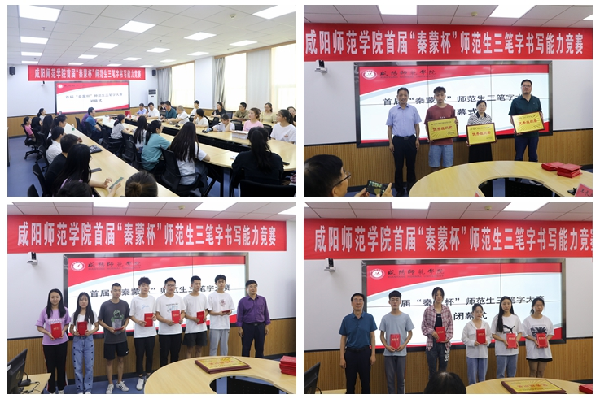 咸阳师范学院首届“秦蒙杯”师范生三笔字书写能力竞赛决赛由教务处举办,于右任书法学院承办,实验室管理处协办,西安秦蒙电子科技有限公司赞助,此次比赛分二级学院初赛,专家初评和学校决赛三个环节,共有174人参加了校级决赛。决赛分为专业和非专业组两个组别以及毛笔字、粉笔字和钢笔字三个类别。最终评选出一等奖25名(含非专业组三个类别共13人,专业组三个类别共12人),二等奖41名(含非专业组三个类别共22人,专业组三个类别共19人),三等奖100名(含非专业组三个类别共55人,专业组三个类别共45人)。于右任书法学院、职业技术学院和物理与电子工程学院获得优秀组织奖。