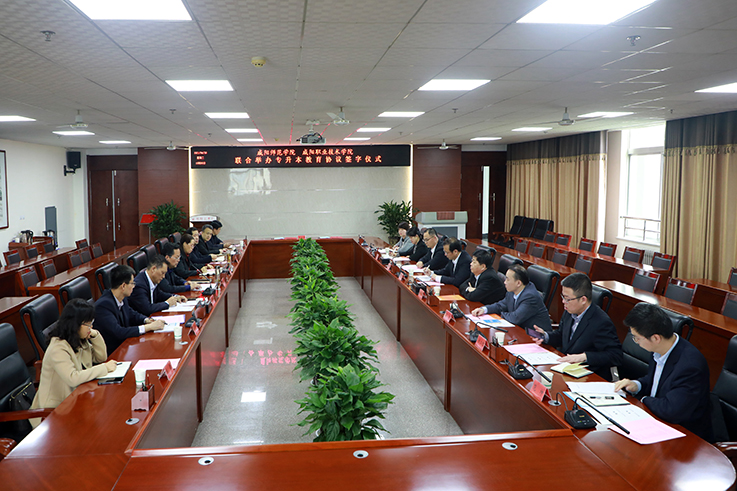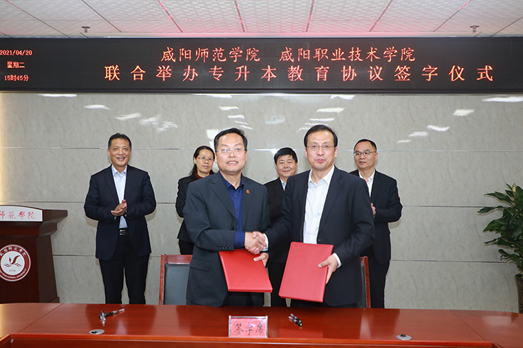 4月20日,我校与咸阳职业技术学院联合举办专升本教育协议签字仪式在第三会议室举行。校长舒世昌、党委副书记周群英,咸阳职业技术学院院长杨卫军、副院长王辉、杨新宇出席签字仪式,副校长王长顺主持会议。