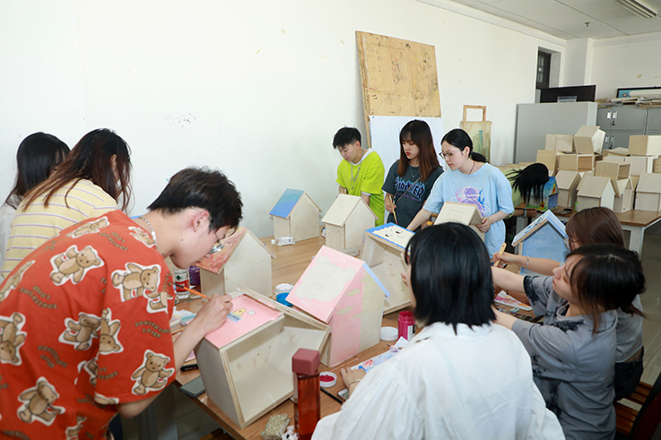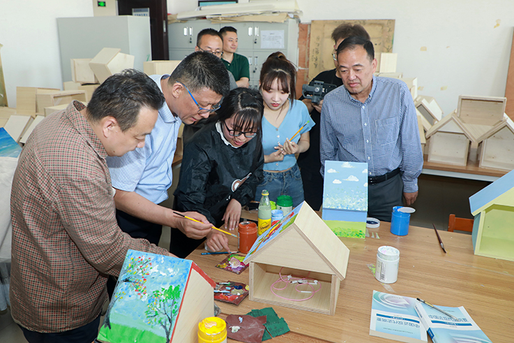为建设生态文明校园,助力咸阳市创建国家森林城市吸引更多的鸟类栖息在树木葱茏的校园中,校党委书记赵万东、副校长吕广利应邀参加美术学院举办 的“创建美好生态,师生共绘鸟巣”活动,与美术学院师生一起举起画笔,为美丽校园建设共绘生态鸟巣。此次活动共绘制生态鸟笼200余个,将悬挂在我校校园内,成为校园一个新的打卡地。