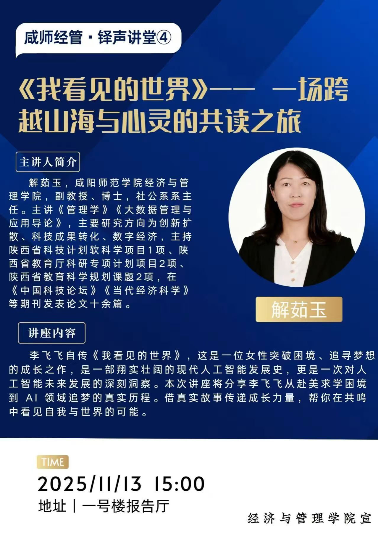 咸师经管-铎声讲堂4 《我看见的世界》--一场跨越山海与心灵的共读之旅