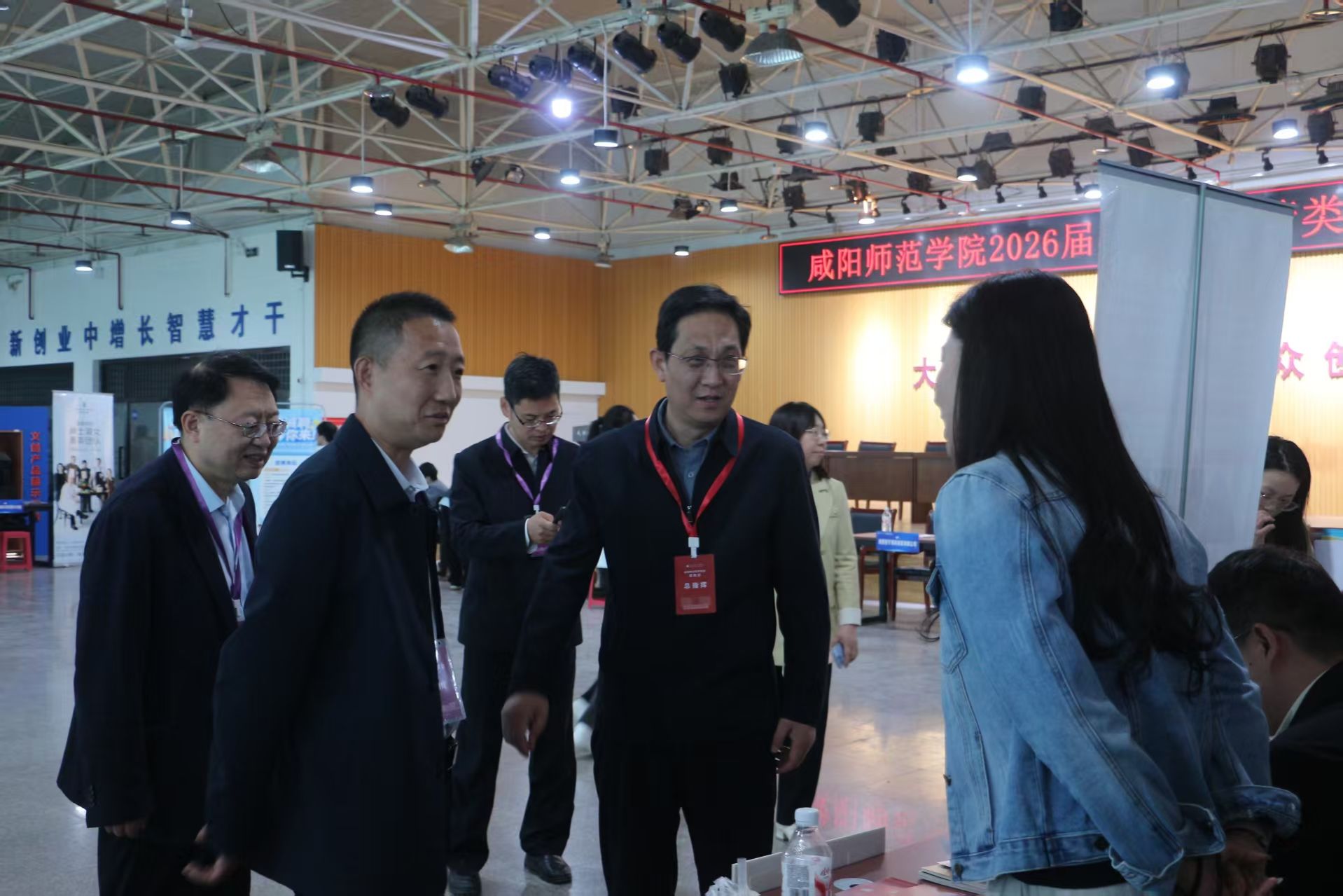 为深入推进毕业生就业工作,搭建经管类学子与用人单位的精准对接平台,4月15日,我校2026届毕业生经管类专场招聘会在渭城校区学馨苑三楼招聘大厅举办。副校长宁海军亲临招聘会现场指导。